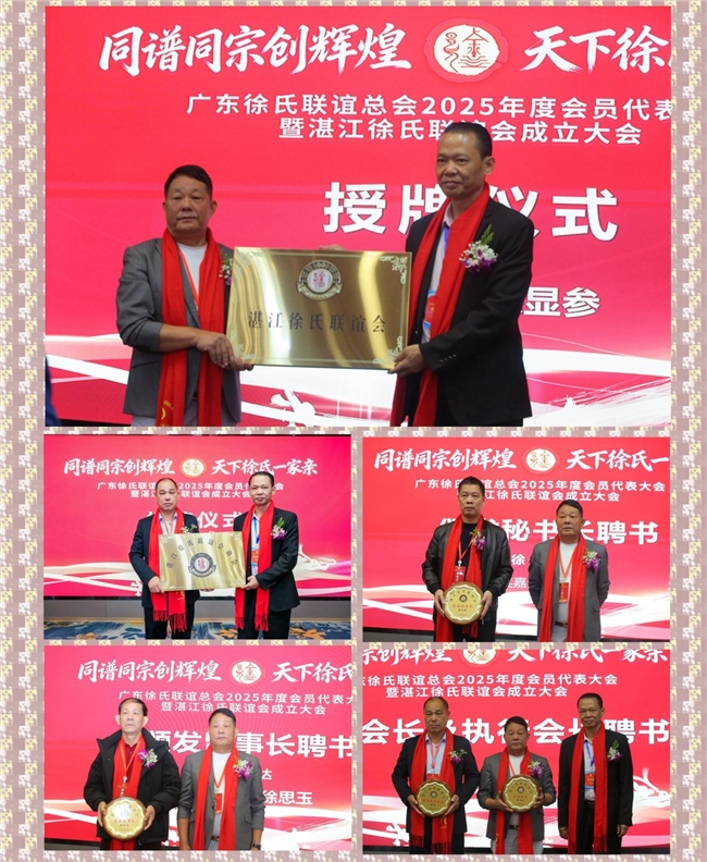 12月28日,广东徐氏联谊总会2025年度会员代表大会暨湛江徐氏联谊会成立大会在中国・湛江召开